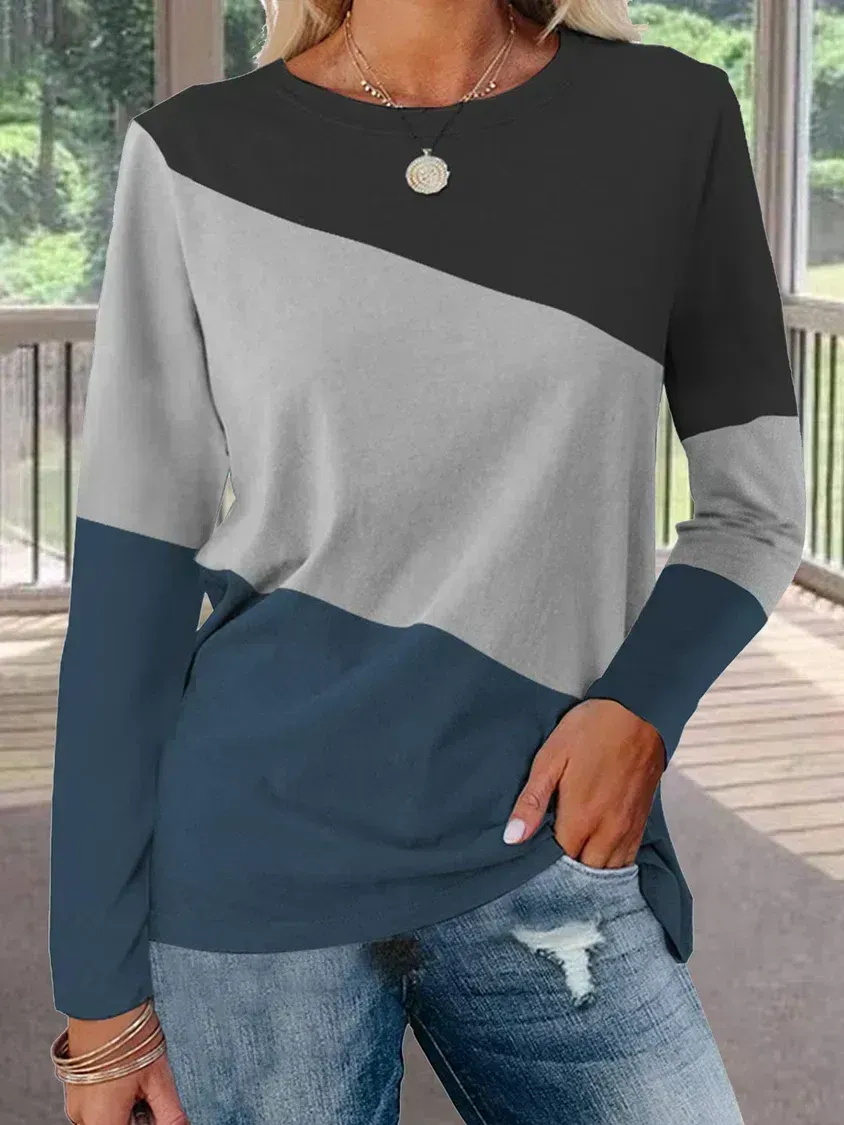 Crew Neck Color Block Casual Long Sleeve T-Shirt/Tee
