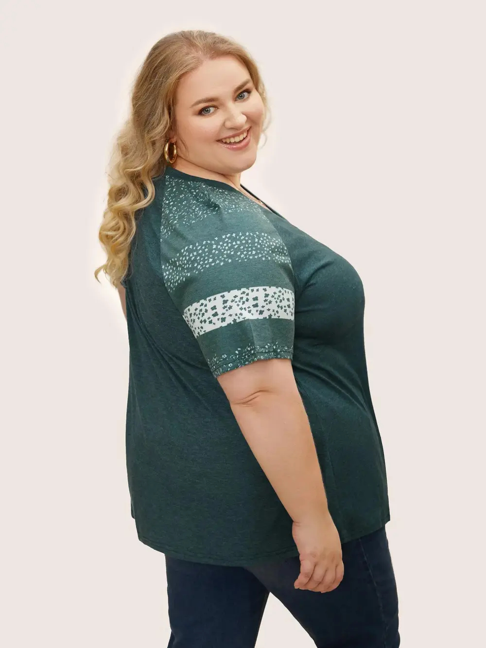 Ditsy Floral Colorblock Contrast Raglan Sleeve T-Shirt