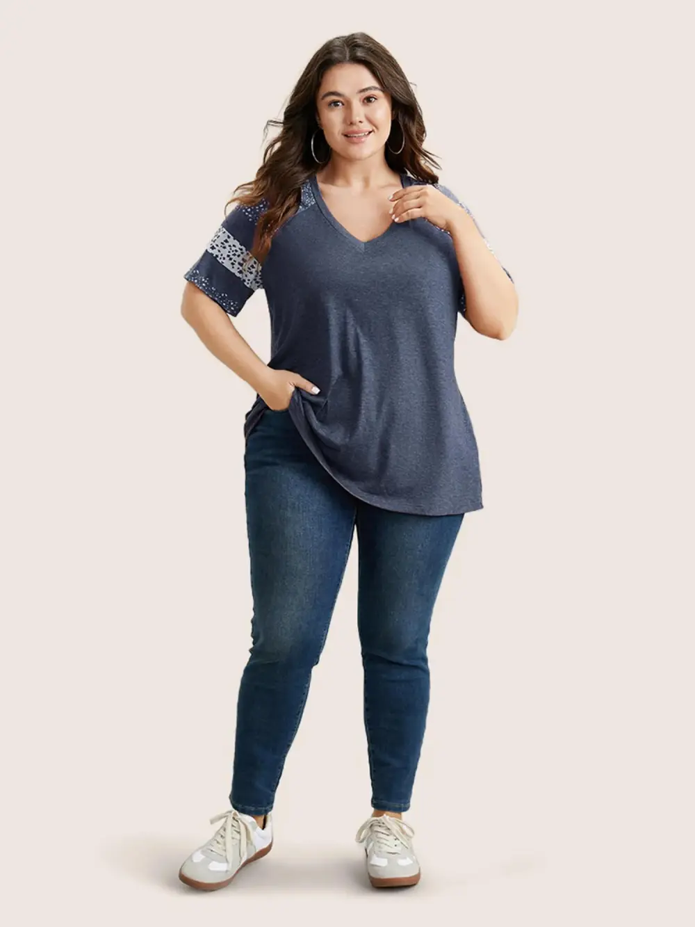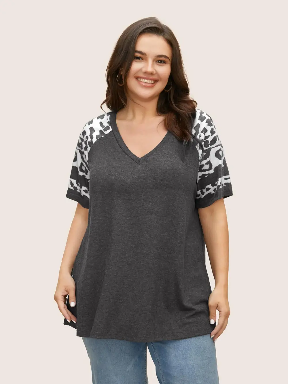 • Ditsy Floral Colorblock Contrast Raglan Sleeve T-Shirt