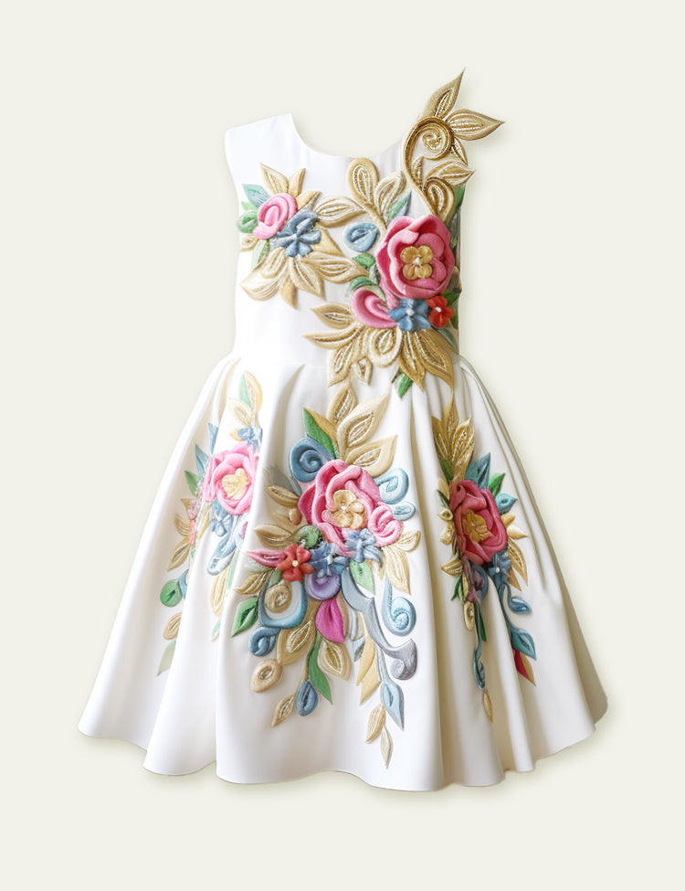 Toddler Kid Girl Princess Garden Castle Design Sleeveless Splicing Flower Embroidered Dress
