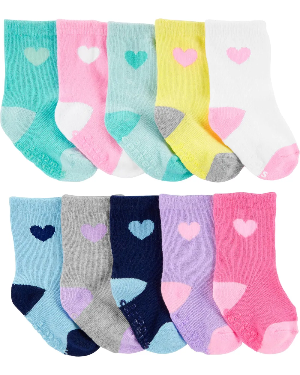 Stock up on socks! Crafted in a soft cotton blend with slip resistant soles, these socks are great for lounging and playing.