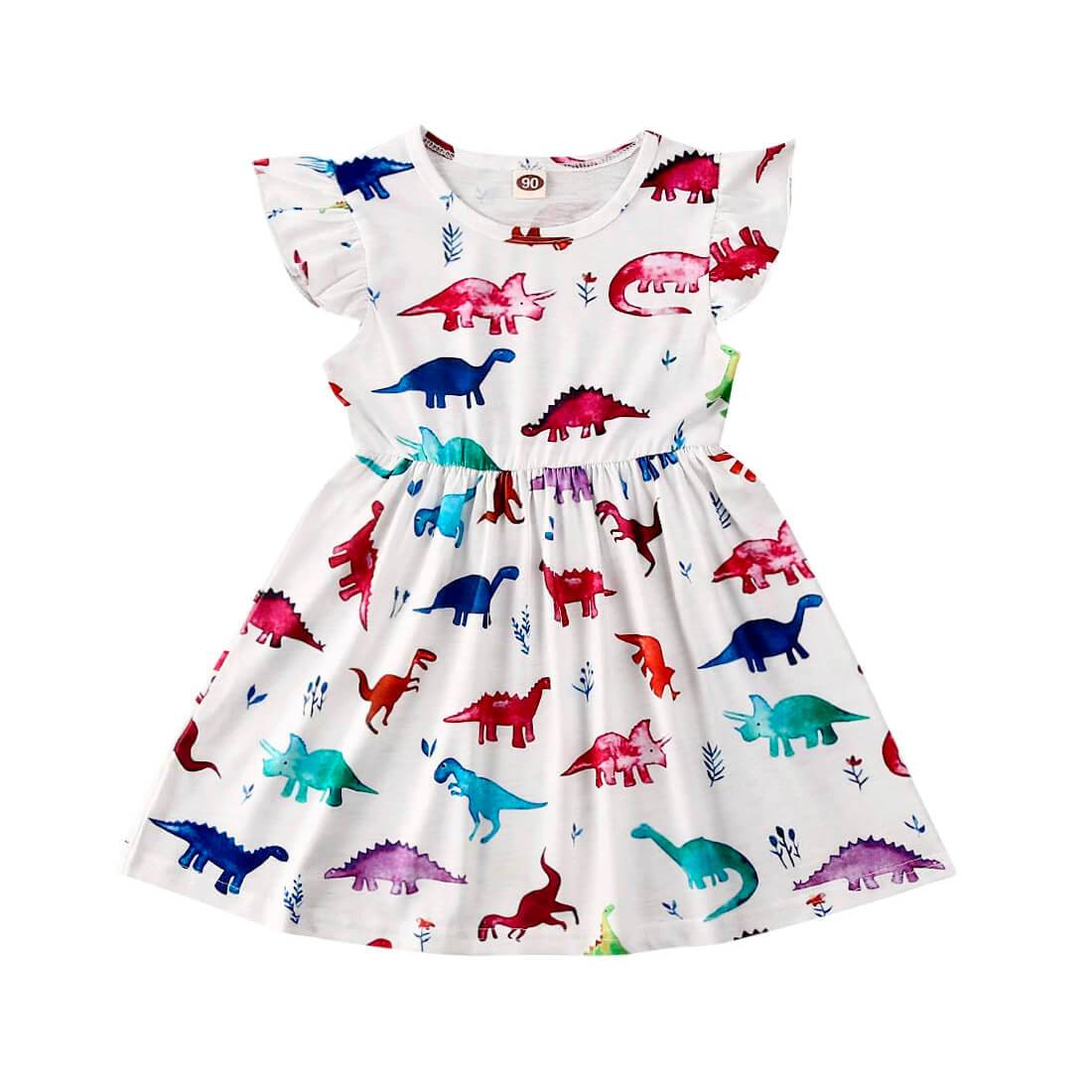 - Colorful dinosaur prints and flutter sleeves