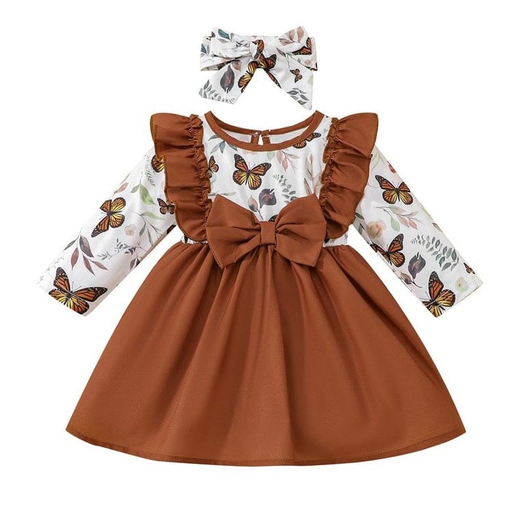 Introducing our enchanting long sleeve dress, a delightful addition to your baby girl's wardrobe. Adorned with a captivating butterfly and flowers print, this dress embodies the beauty of nature in every stitch. The soft, long sleeves provide warmth and comfort, making it ideal for any weather. The intricate details of the butterfly and flower motifs add a touch of whimsy to this classic design.