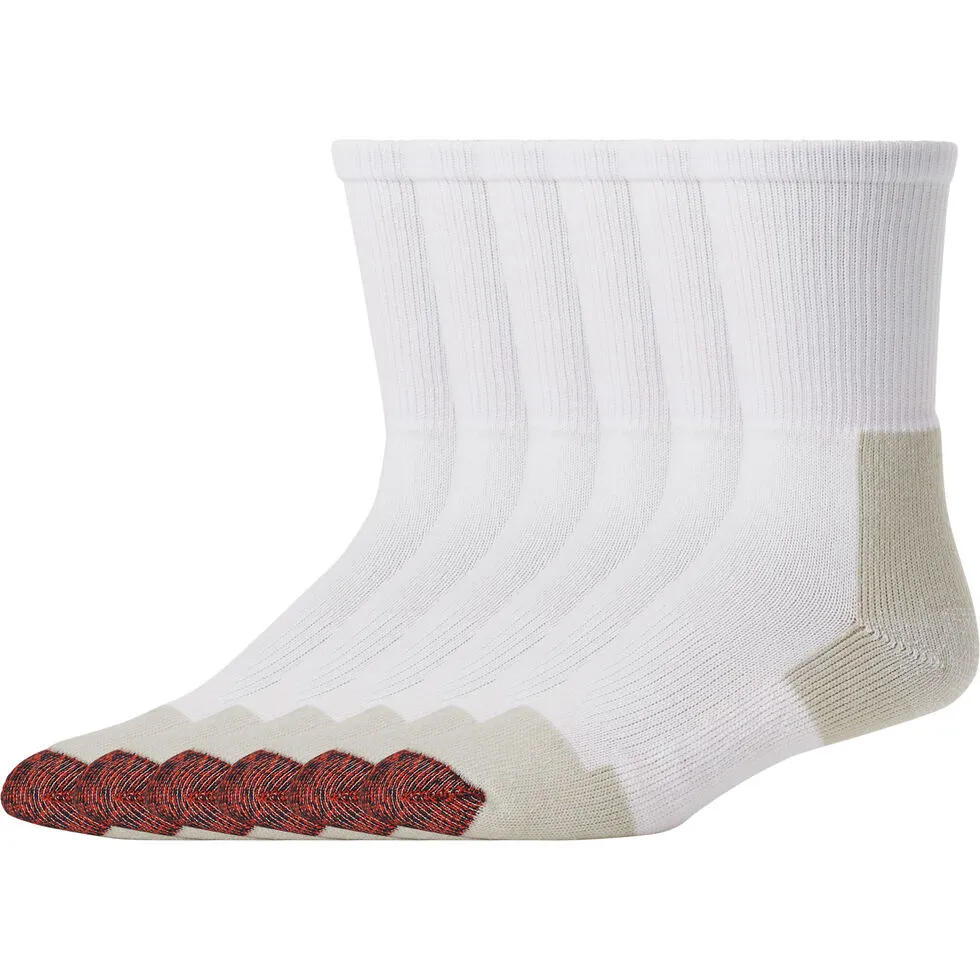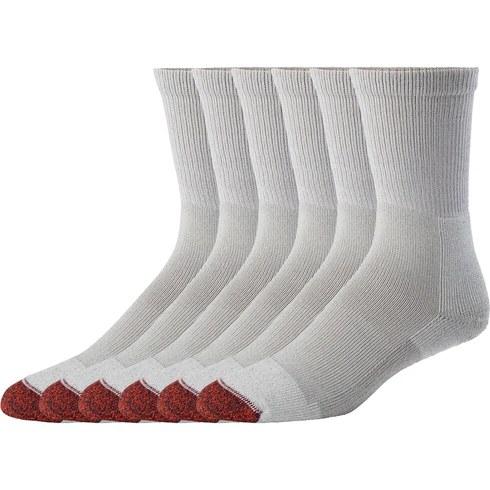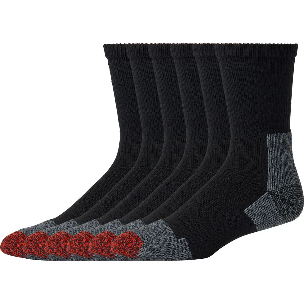 You can never have too many of these. So lay in a good supply of our better-than-basic work socks. More substantial footbed, heel and toe cushioning than most, for extra padding and shock absorption when wearing steel toes. Sweat-wicking acrylic/nylon/spandex, in a lighter weight for year-round comfort. 6 pairs.NOTE: Good news for folks with allergies – these socks are made without the use of rubber accelerants.