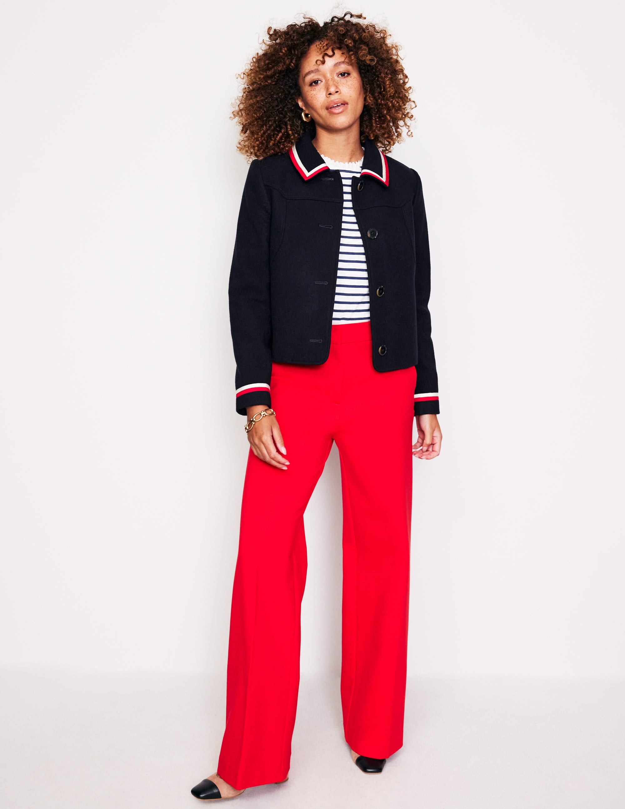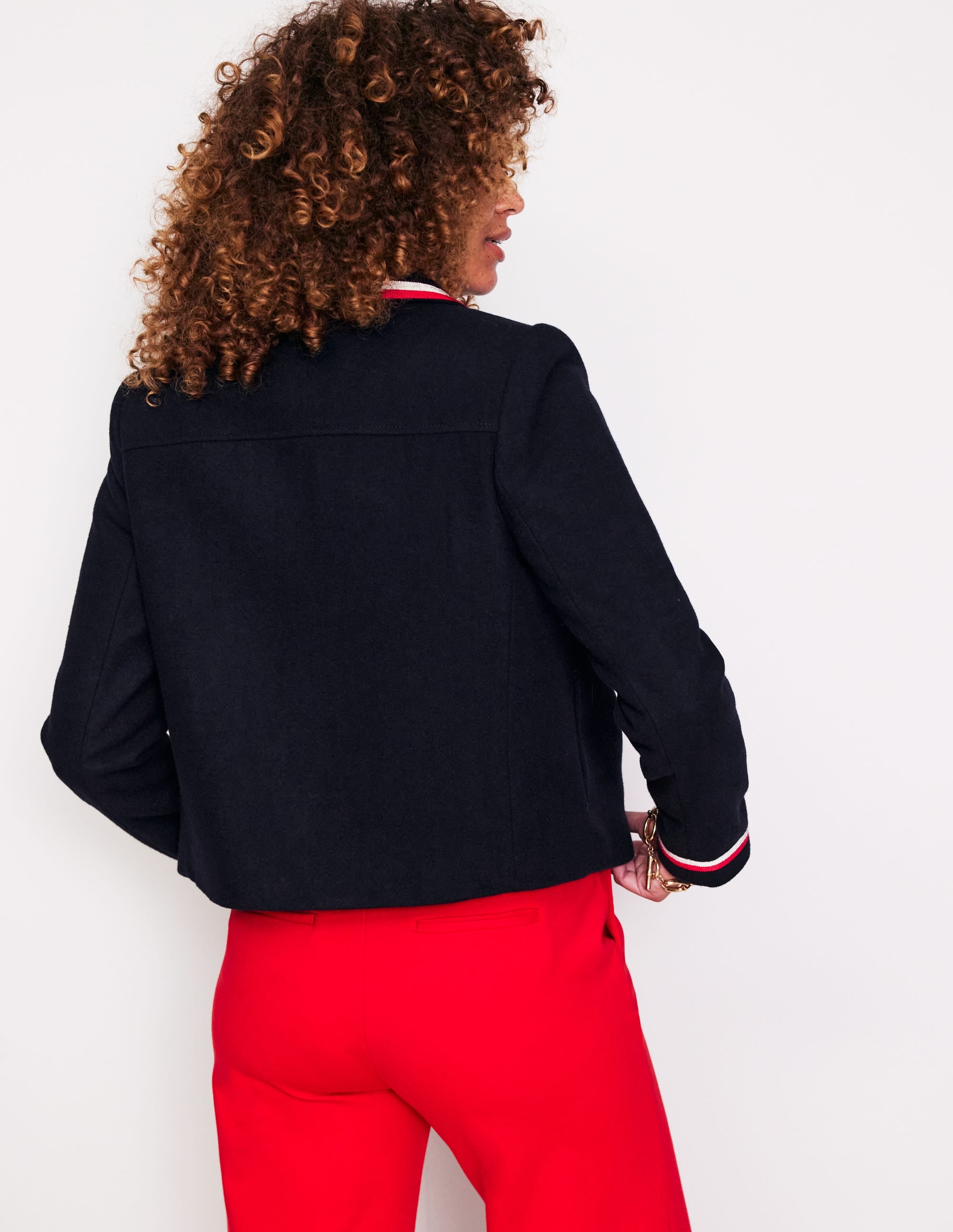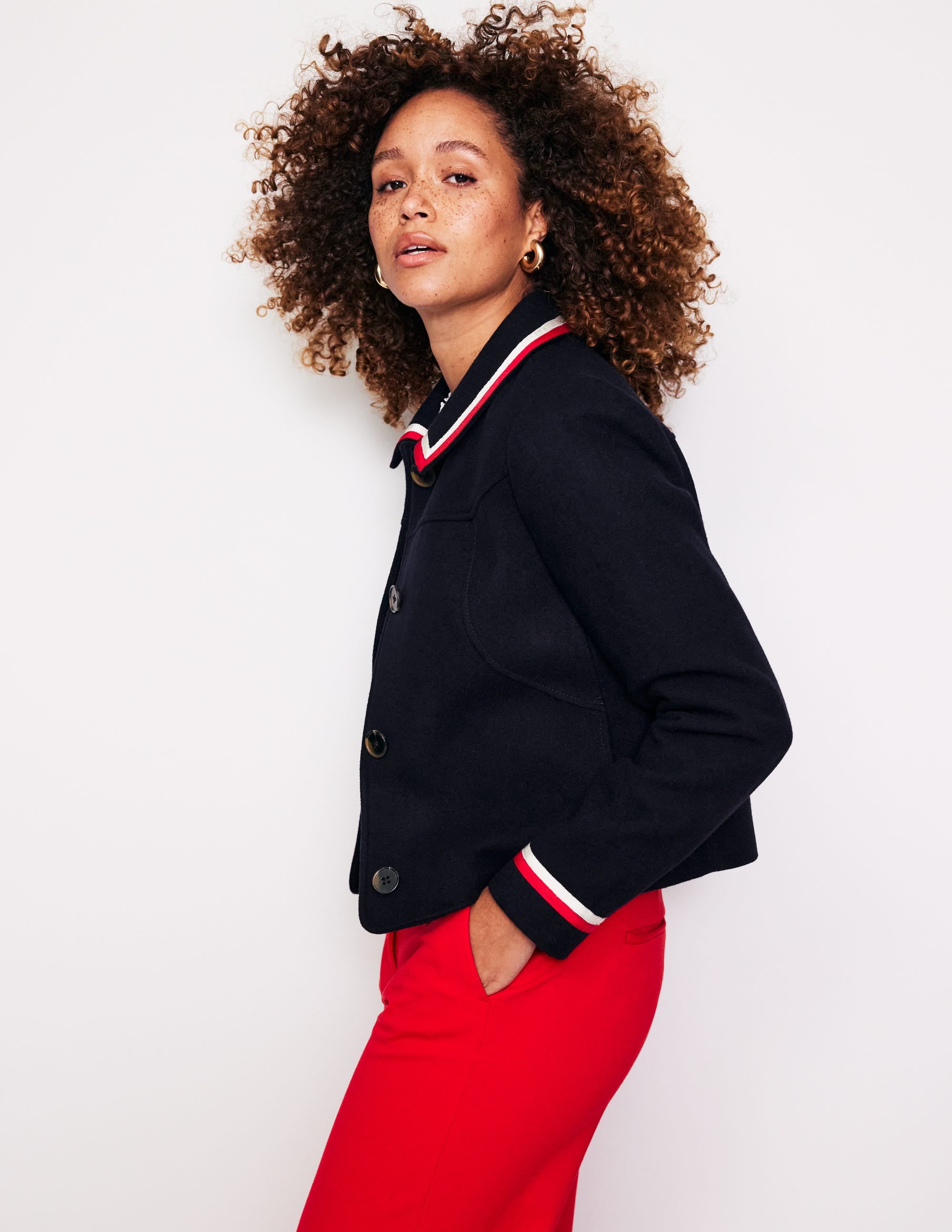 Cut to a cropped silhouette our Oxford Melton jacket is endlessly versatile. It pairs just as easy with jeans and trainers as it does smart trousers and heels.